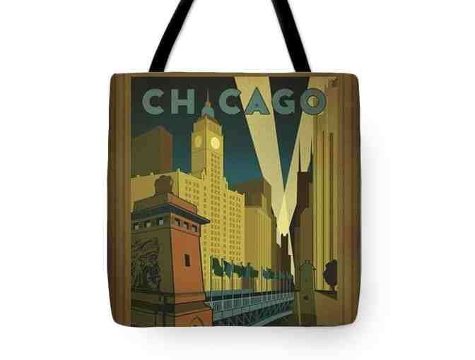 ! ART TOTE !: 18X18", MADE IN THE USA!: "CHICAGO", Vintage Travel Art