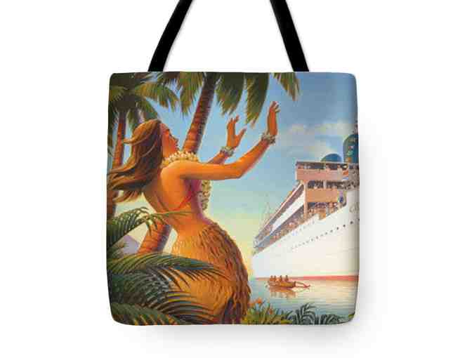 ! ART TOTE !: 18X18", MADE IN THE USA!: "CITY OF HONOLULU", Vintage Travel Art