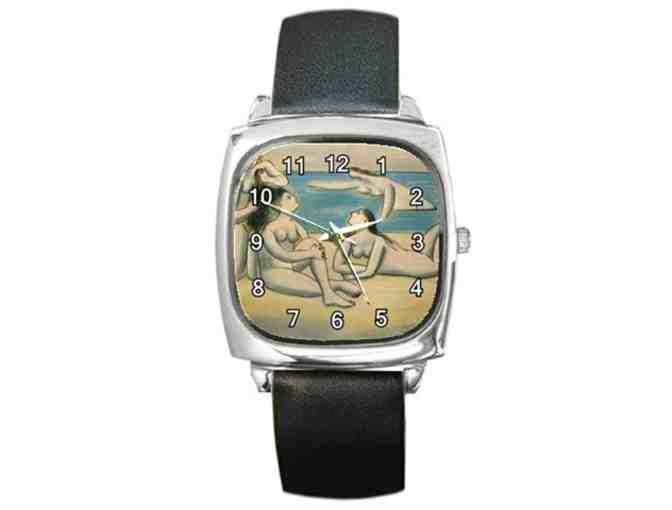 This metal timepiece is a perfect addition to your watch collection. Available in various style and shapes, this unisex square shape watch features a WORK OF ART from the most collectible ART MASTERS in history!