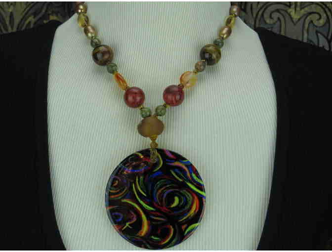 "LES FLEURS" Porcelain Art Pendant 1/KIND Necklace w/ Citrine, Jasper, Pearls, Tigers Eye