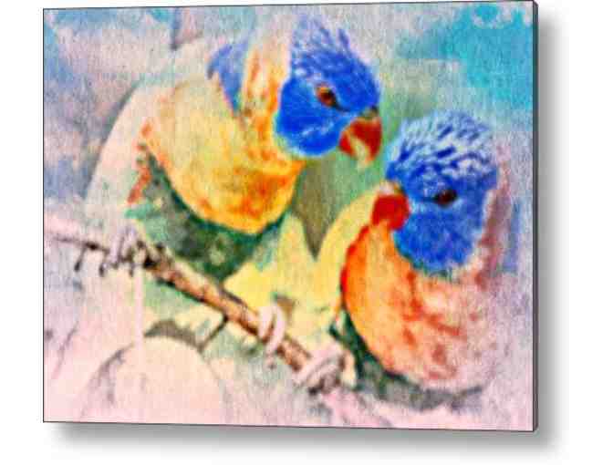 "PRETTY BIRDS": Unique Acrylic Surface lets the LIGHT shine through! 30"x22.50" !!