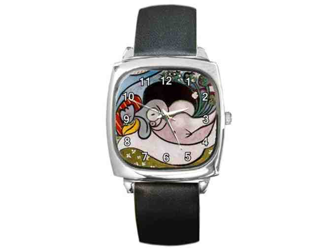 This metal timepiece is a perfect addition to your watch collection. Available in various style and shapes, this unisex square shape watch features a WORK OF ART from the most collectible ART MASTERS in history!