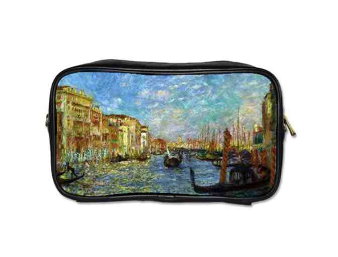 "VENICE CANAL" by Renoir: UNISEX LEATHER ESSENTIALS BAG w/ART INSET, detachable strap