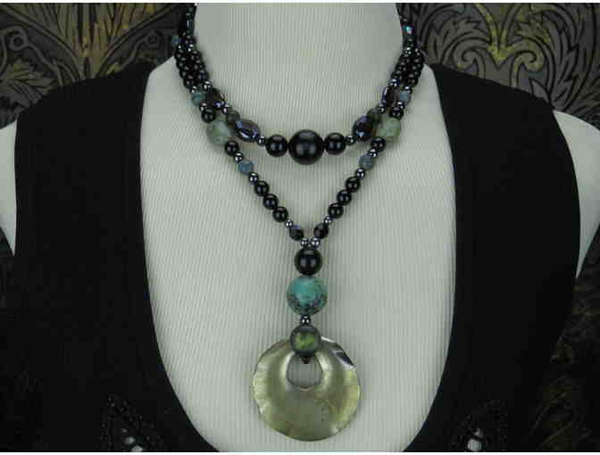 1/KIND Bold Necklace features 2 strands, Magnesite, Turquoise, Jasper, Onyx, Hematite ++