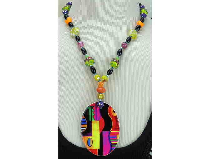 1/KIND FAB FAUX NECKLACE #223 W/PORCELAIN ART PENDANT "THE FASHION SHOW"
