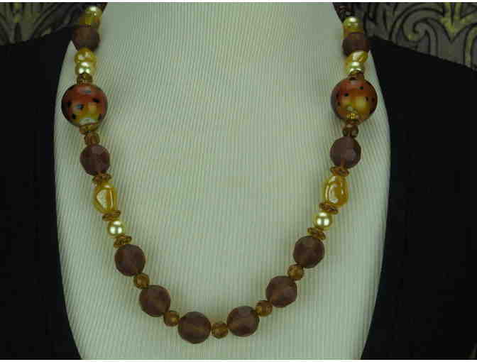 1/KIND CAPTIVATING NECKLACE FEATURES JUNGLE GLASS BEADS AND AUSTRIAN CRYSTAL PEARLS!
