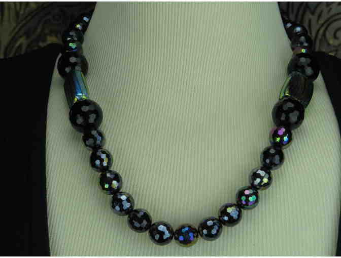 Awesome and Alluring Statement Necklace w/HUGE Faceted Onyx and Crystal elements!