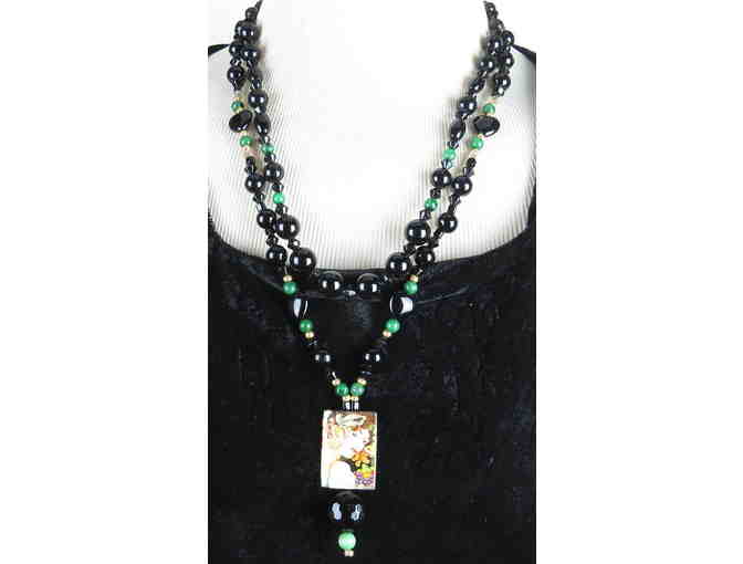 Absolutely EXQUISITE! 1/KIND GEMSTONE NECKLACE #410: Features Hand Painted Art on ONYX!
