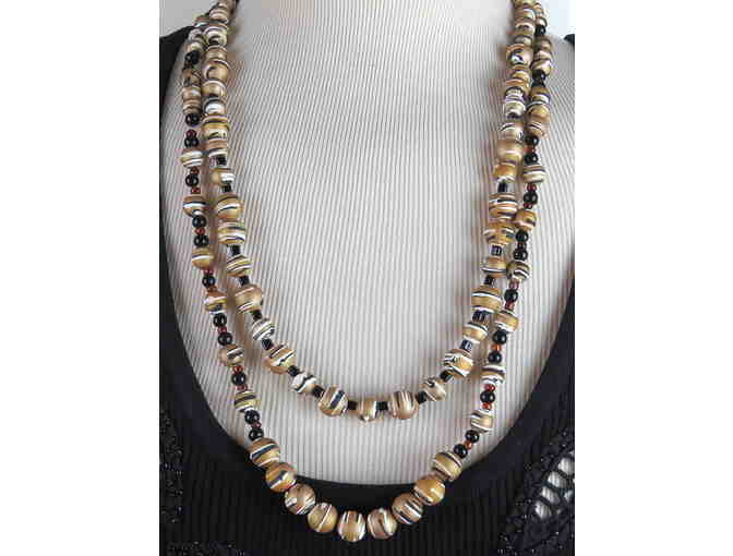 It's all in the details! Each piece by BeJeweled is one of a kind.  The story of this necklace begins with an investment of more than a dozen years, to source unique elements  from every corner of the world.