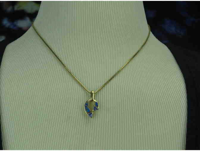 N5: Inlaid Australian Opal and Tanzanite Horseshoe Pendant on 14 kt fine gold chain