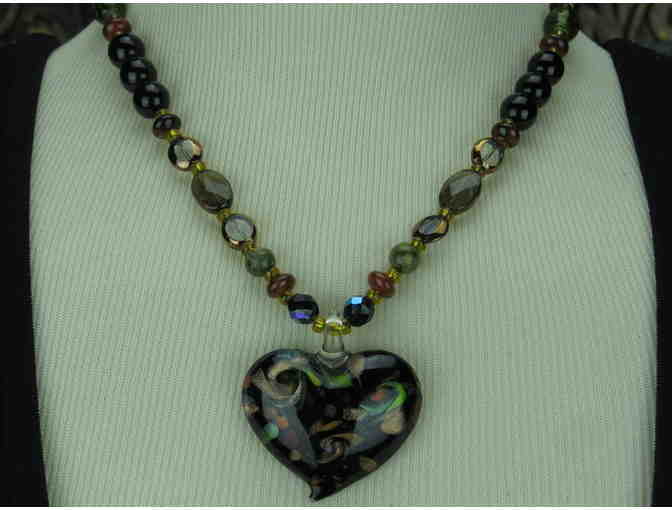 - FEATURES: ORNATE COLORFUL LAMPWORK HEART AND BLACK ONYX