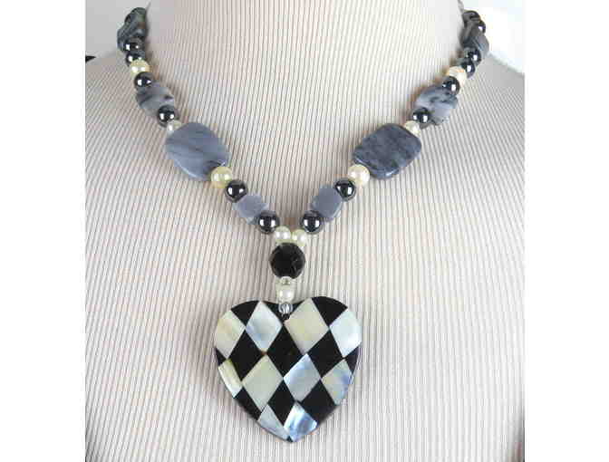 Unique 1/KIND GEMSTONE NECKLACE #439 features inlaid MOP and Onyx!