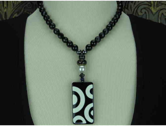 POP Style Black &White Necklace features Black Onyx and South Sea Shell Pearl!