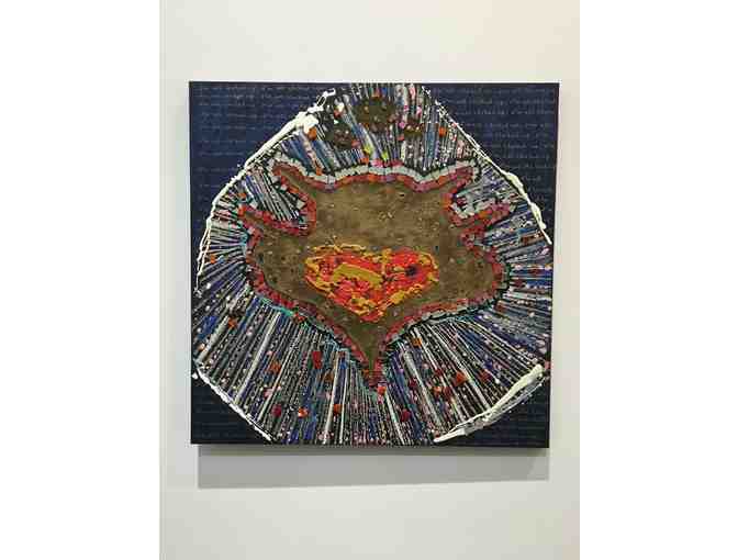 Oil and encaustic on canvas with mosaic