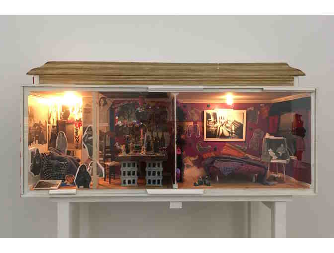 Wood box and mixed media, including electric lighting