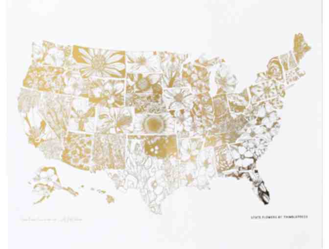 USA Gold Foil State Flower by Thimblepress (sized 16" x 20"). Wildflower seeds are included in the package. A perfect gift for garden/travel enthusiasts plus a great teaching tool for children with an interest in nature and U.S. geography.