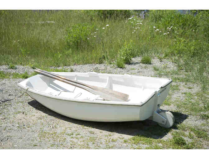 Made by boat builder Paul Spades (1920 - 2007), this 11' boat is easily pulled over a beach or lawn. Includes oars.
