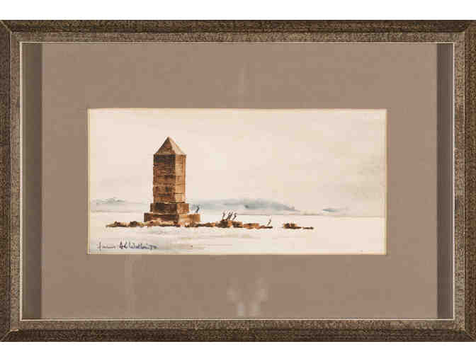 Watercolor on paper painting of the Monument at the entrance to the Fox Island Thoroughfare. Signed by the artist. Image 4” x 8 ½”; framed 9 ½” x 14”.