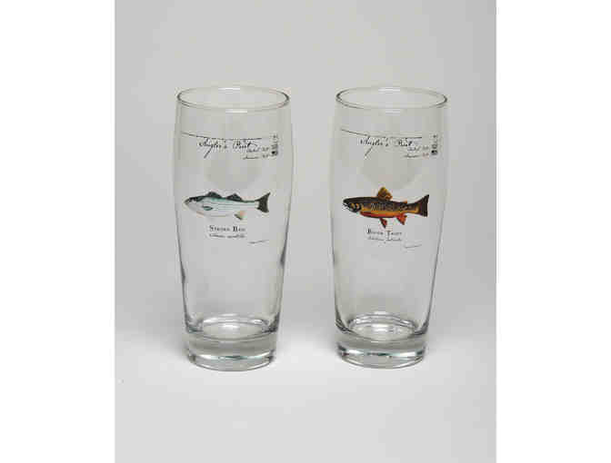 Each 32.5 ounces (bigger than American or British pints). Adorned with full-color scientific illustrations of a brook trout and a striped bass by award winning Maine artist, Karen Talbot.
