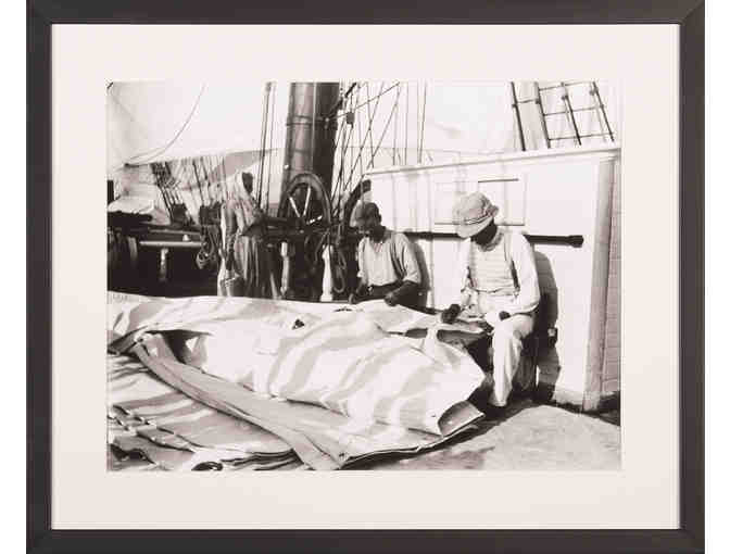 “Adelbert Montgomery and Wheatly, serving sails on the bark CARRIE WINSLOW” ca. 1895. Silver Gelatin Print from Penobscot Marine Museum’s Ruth Montgomery Collection. Image: 12 ½” x 16 ¼”; framed 18 ¾” x 21 ¾”.