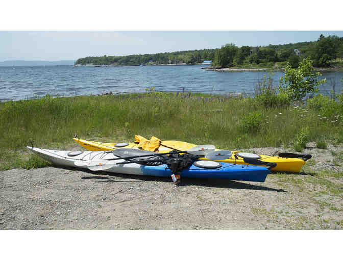 Zone DLX outfitting for ultimate comfort when cruising; bow and stern hatches, with added storage space for longer distances or extended weekend camping. 14.5 ft. long, each 53 lbs. Very good condition. Package includes 2 new Seals spray skirts, 2 Seals cockpit covers, paddles, roof rack and straps.