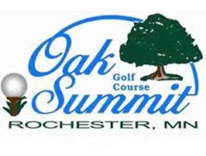 A round of golf for four - walking, at Oak Summit Golf Course in Rochester, MN. Not valid during tournament play - tee time reservation required. Expires at the end of the 2016 golf season.