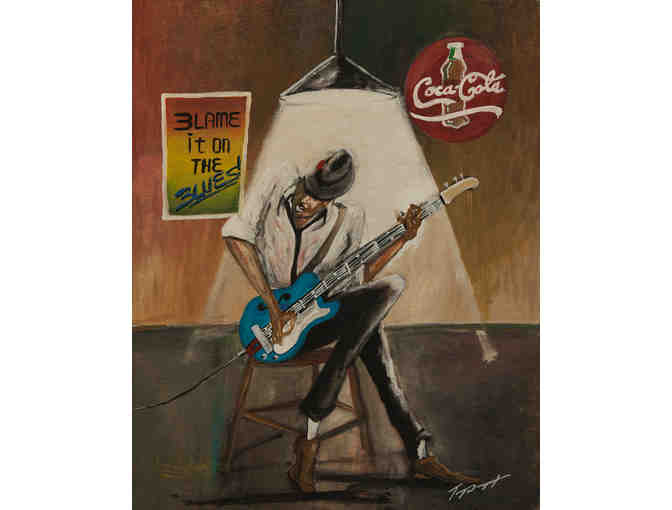 This is a drawing of a guitar player seated under a spotlight playing his guitar. Would look great hanging on a wall in your home or office. For the blues music lover, you can also give it as a gift.
