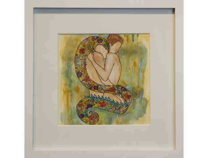 This is a watercolor and ink pen depiction of Adam and Eve.