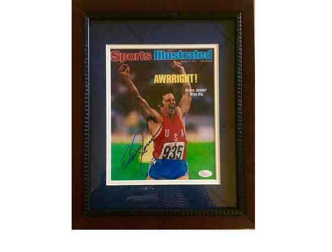 13 x 16 Double matted and custom framed copy of the iconic August 9, 1976 Sports Illustrated cover which captures the moment Bruce Jenner made history earning Olympic gold in the men's Decathlon at the 1976 Summer Olympics in Montreal. The moment which quickly catapulted Jenner to fame and earned him the title “the worlds greatest athlete” in the United States' bicentennial year is accompanied by a hand-signed personalized autograph which has been fully examined and authenticated by James Spence Authentication, LLC.