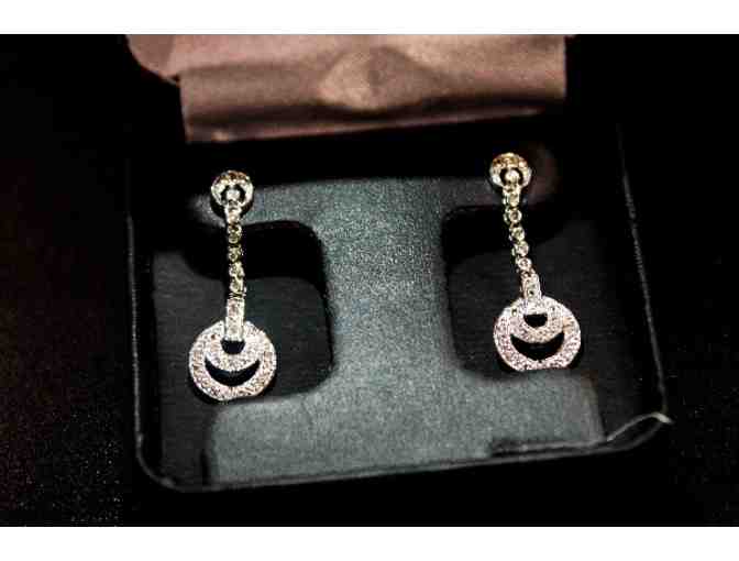 Bring out her natural beauty with one of a kind diamond dangle earrings designed by the jewelry artists at Calhoun's Jewelers. 14KT White gold showcases CTW diamonds displayed in a gorgeous radial design. Sure to make any woman swoon!