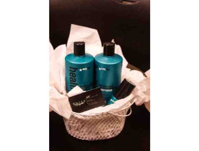 Kelly Bergman, cosmetologist at Salon 808 in Topeka, put together this healthy hair gift basket. Basket includes shampoo, conditioner, and soy renewal oil.