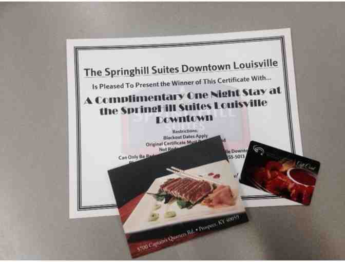 (1) Night Stay Downtown Louisville, KY at Springhill Suites and $40 in Gift Cards for Captains Quarters Restaurant.