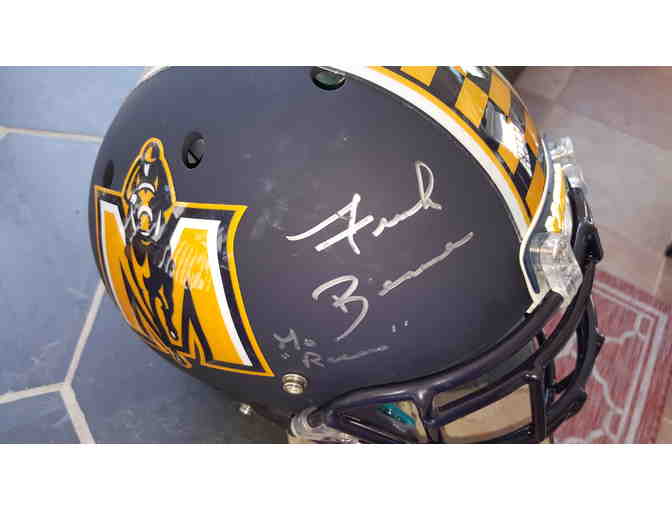 On one side the helmet is signed by legendary Racer coach and OVC Hall of Fame member, Frank Beamer. Beamer, who was the consensus National Coach of the Year in 1999, is the active leader among Division I FBS coaches in victories with 273 wins over 34 seasons as a head coach. In his 29 years at the Virginia Tech helm, his overall record with the Hokies is 231-115-2. He became Tech's winningest football coach during the 1997 campaign. Counting six years as head coach at Murray State prior to joining the Hokies, Beamer's overall record is 273-138-4.