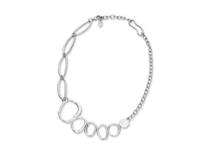 Sassy shiny, light weight silver necklace, will make any outfit look chic. Modern Girl Necklace by Lulu Avenue, 17 inches with 3 inch extender. Silver plated over metel.