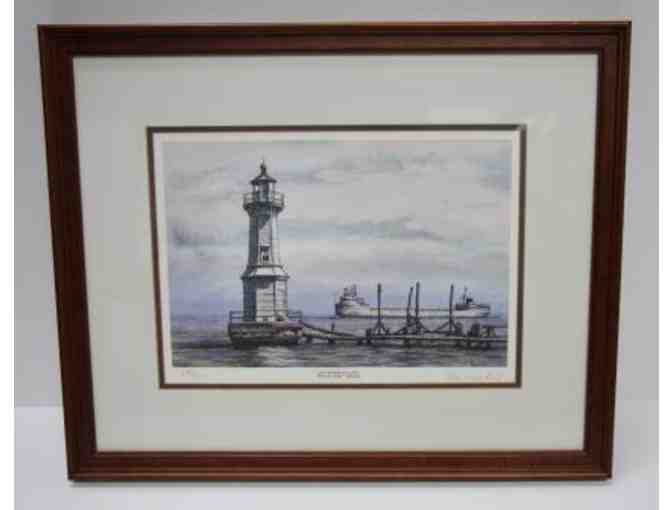 Signed Leo Kuschel Lithograph Old Grosse ILE Light House 280/500