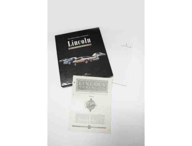 Includes ""Lincoln : An American Tradition"" by R Hutton & J Lewandowski - a very fully illustrated 131 page hardback with dustjacket and slipcase. Also includes a Lincoln Service Bulletin on Timing dated December, 1912 and an 8.5""X11"" notepad with Lincoln Motor Company printed at the top of each sheet.
