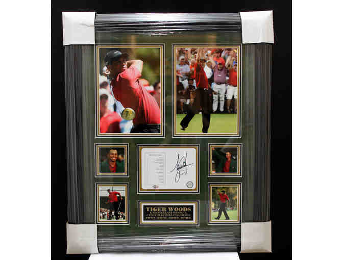 Famous professional golf player, Tiger Woods autographed and framed photo.