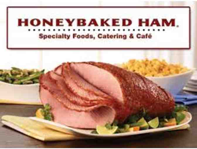Honey Baked Ham Gift Basket including $50 Gift Card and a selection of sauces and spices.