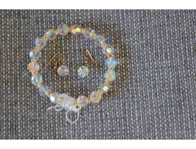 Irredescent crystal bracelet and hanging earrings from Teen Challenge