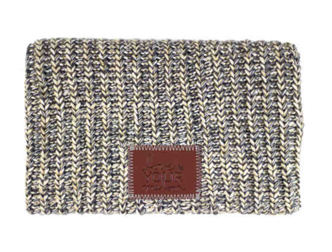 A Love Your Melon Beanie in black/white. Love Your Melon is an apparel brand dedicated to giving a hat to every child battling cancer in America as well as supporting nonprofit organizations who lead the fight against pediatric cancer.