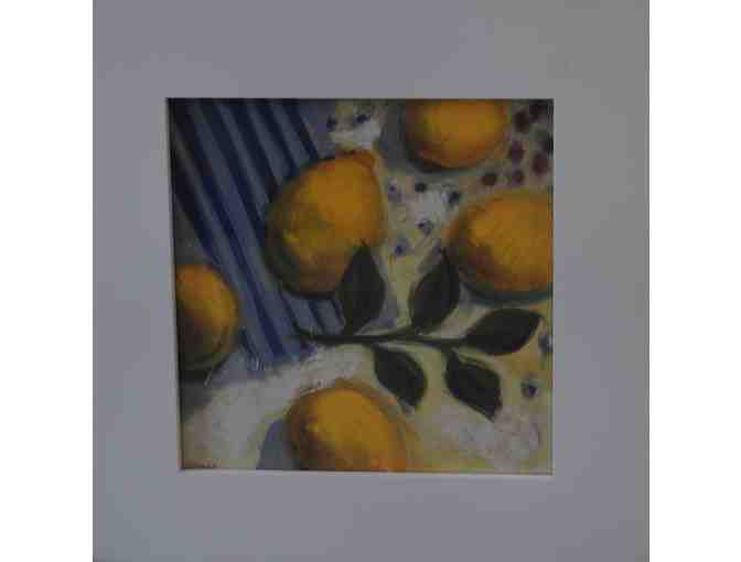 "Lemons" signed and framed giclee painting by Barbara Moody, faculty member at Montserrat College of Art. Awarded the Goettemann Distinguished Artist/Teacher Award at Rocky Neck Art Colony, barbara.moody.com