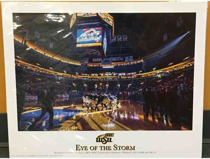 16x20 print titled "Eye of the Storm" from the Scottrade Center, St Louis, MO, MVC Tournament Semifinal, March 9, 2013. WSU-66 ISU-51. by Mark Wilkes