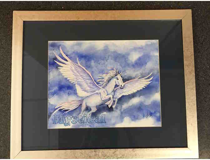 This original watercolor can be yours! The artwork is a 20"x16" framed and matted watercolor painting called "Mystical" by local artist, Benita Lane.