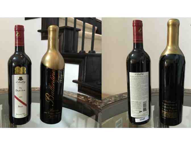 You are bidding on 2 interesting wines: A 2010 Ballentine Cabernet Sauvignon Reserve and a 2009 dArenberg Dead Arm Shiraz.The Ballentine was purchased at the winery and is sealed with gold wax and signed by the winery caretaker in gold pen.It is a beautiful Cabernet with full flavor and body, but without a harsh bite.It will enter its prime drinkability period around 2018 and is typically rated a 92 point wine.The dArenberg is a fine Australian Shiraz.The term Dead Arm comes from the fact that a portion of these old vines have become dead wood, which makes them known for producing some of the most powerful and concentrated flavors because all the vines energy goes into creating half the fruit.Typically rated a 94 point wine, it is very deep garnet-purple colored and presents an intense and complex nose of blackberry preserves and dried mulberries over coffee, black olives, smoky bacon and humus. The palate is richly fruited and nicely balanced with layers of savory and dark berry flavors and crisp acid textured by medium-firm finely grained tannins. Should be drinking best 2013 to 2024+