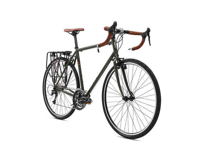 The Fuji Touring is a classic steel touring bike, and has been a beloved staple in the Fuji lineup for more than three decades. The Fuji Touring blends traditional features with modern technologies, resulting in the quintessential bike for long-distance adventuring. The Fuji Touring is great for dedicated cyclists and touring enthusiasts looking to log serious miles – including multi-day, multi-city, and cross-country trips – in need of a comfortable, reliable, yet a fast bike capable of fully loaded travel. The Fuji Touring is also ideal for commuters and errand-runners seeking a robust road option with greater carrying capacity. The Fuji Touring frame is constructed of Fuji’s proven double-butted Elios 2 chromoly steel, both durable and lightweight, with a solid-yet-forgiving ride quality. The Fuji Touring’s geometry is designed for all-day comfort while fully loaded, enhanced stability, and ample rider clearance to accommodate panniers and fenders. The bar-end shifters, a classic touring option, are reliable and easy to use. An ultra-wide gearing range allows riders to tackle both climbs and flats with ease. The Touring comes equipped with an ultra-sturdy rear rack and dual eyelets for installing additional racks. The Fuji Touring enables riders to carry all the necessities for long-distance travel, daily commutes, or around-town errands. For those looking to tackle long distances or needing the durability and reliability of a trusty commuter bike, the Fuji Touring’s a versatile and dependable bike.