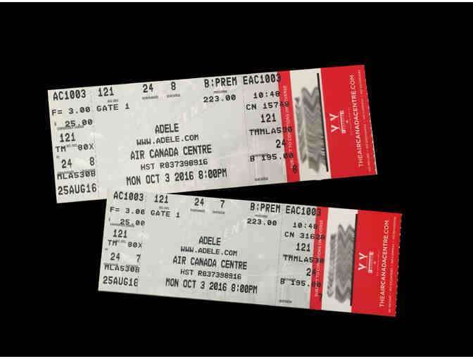 You are bidding on a set of 2 Adele concert tickets at the Air Canada Centre in Toronto, Canada. These tickets are for Monday, October 3, 2016. Section 121, Row 24, Seats 7 & 8.