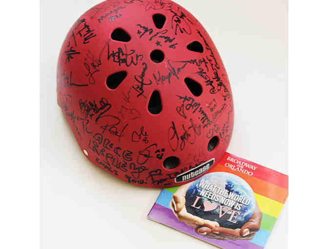 Broadway for Orlando bicycle helmet and CD, helmet owned by Beth Malone and signed at the recording of "What the World Needs Now" by Lin-Manuel Miranda, Michael Cerveris, Joel Grey, Sean Hayes, Chita Rivera, Alice Ripley, Martin Short and more