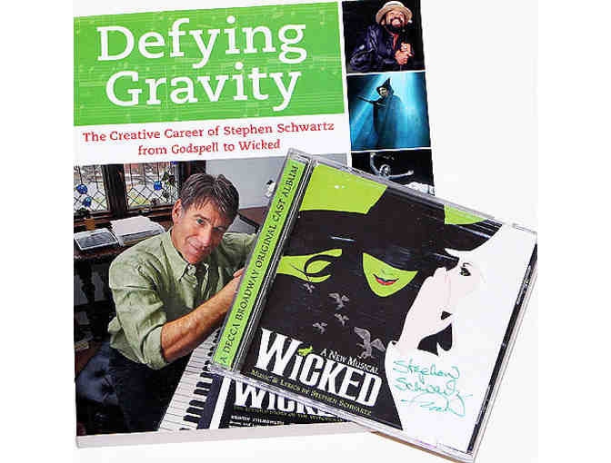 "Defying Gravity" book and Wicked original cast recording CD, book signed by Stephen Schwartz