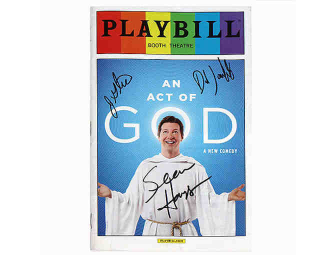 An Act of God Playbill, signed by the entire 2016 Broadway company, including Sean Hayes, James Gleeson and David Josefsberg