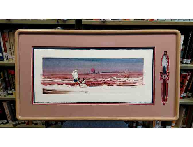 This original watercolor by Michael Atkinson depicts Native Americans in the fading desert daylight.